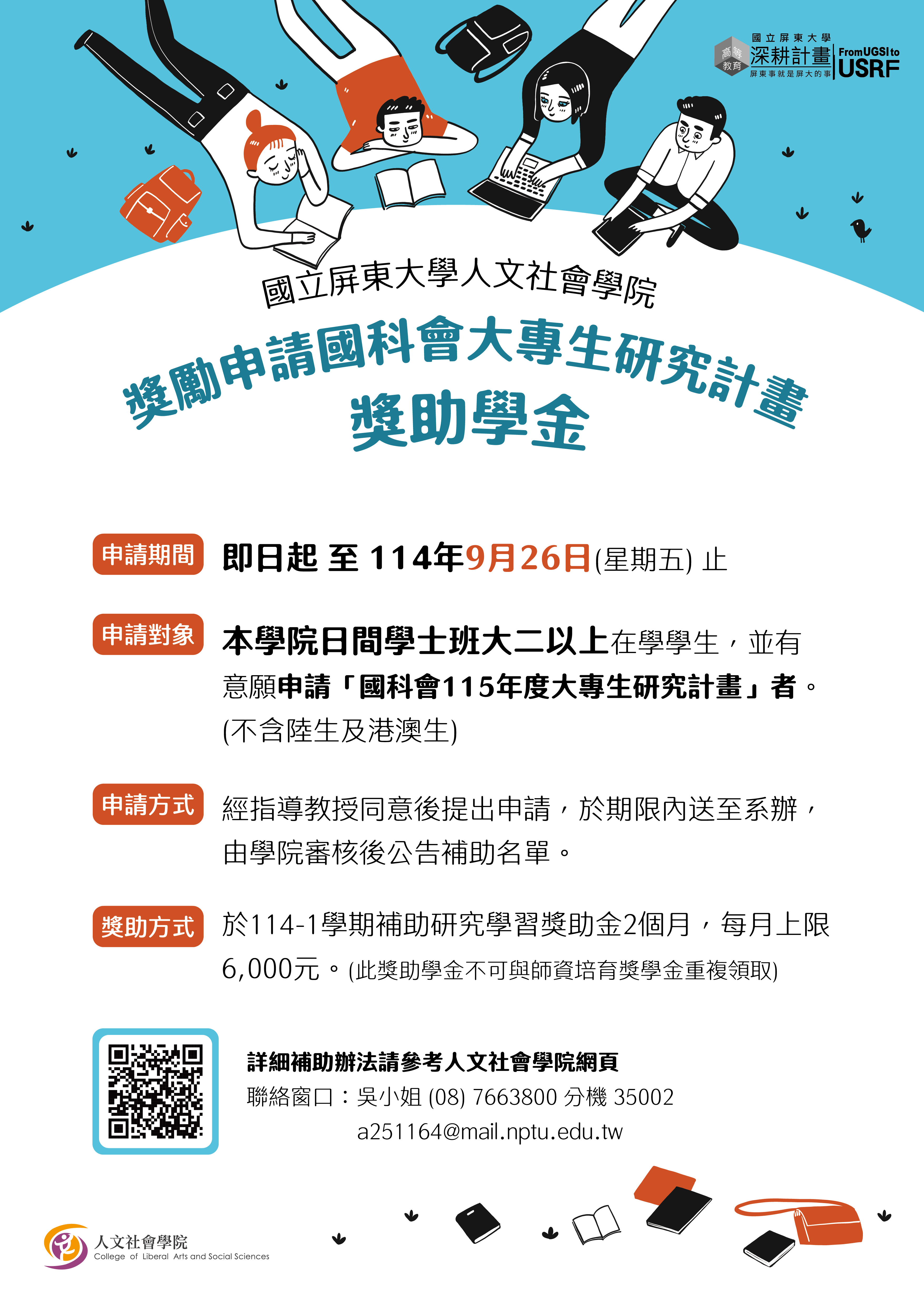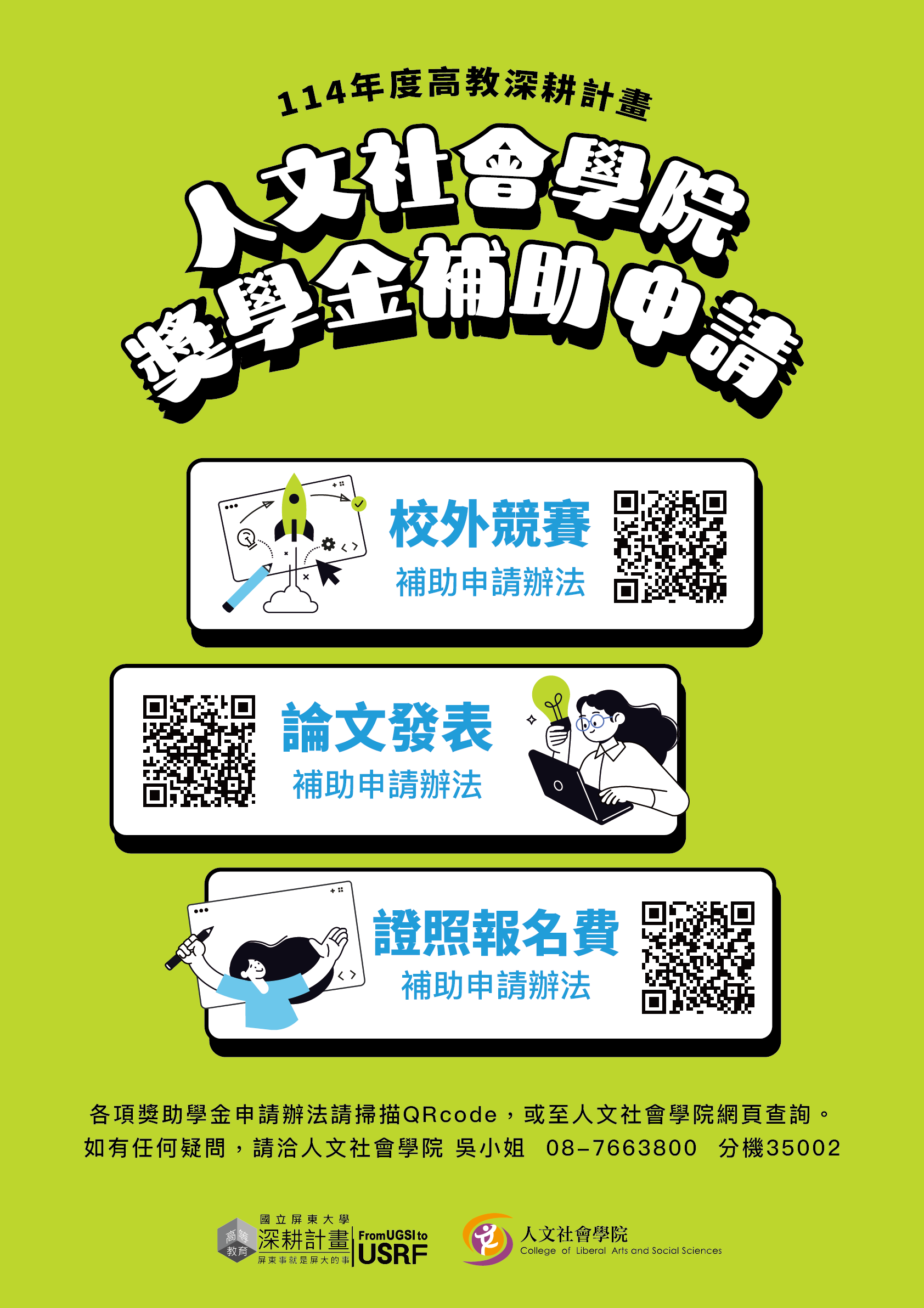 【轉知】人社院114年度高教深耕計畫-獎助學金