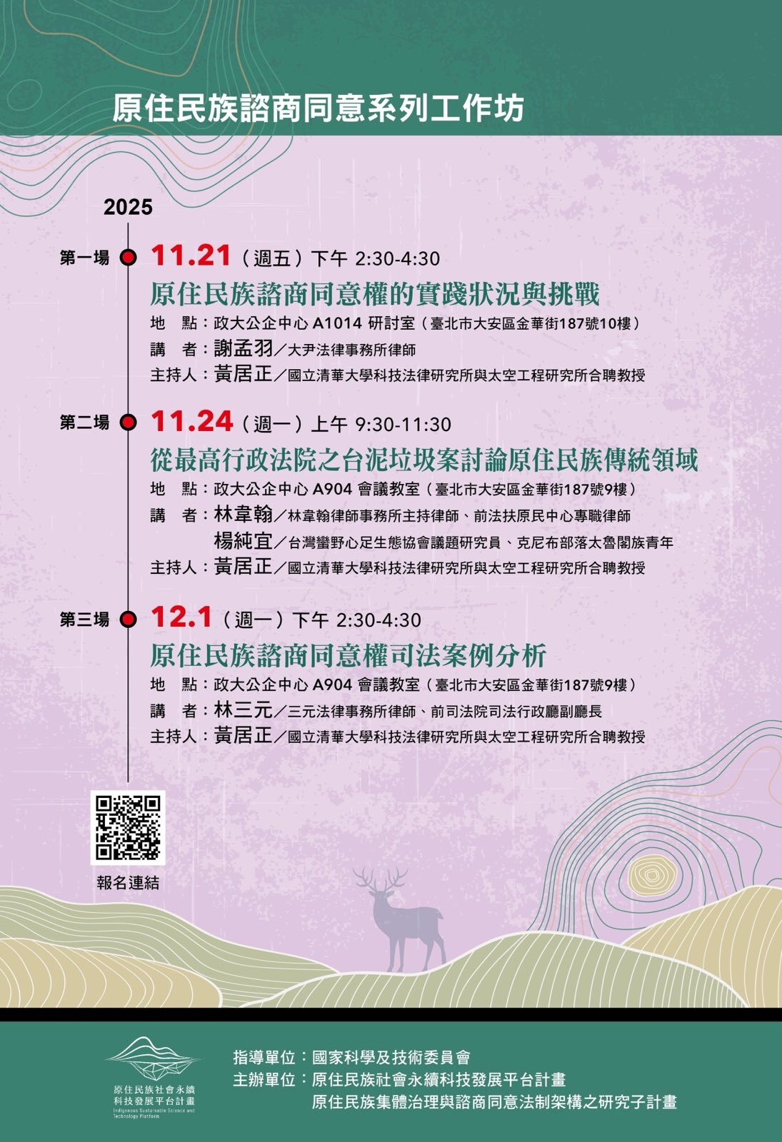 主辦單位:原住民族社會永續科技發展平台計畫、原住民族集體治理與諮商同意法制架構之研究子計畫